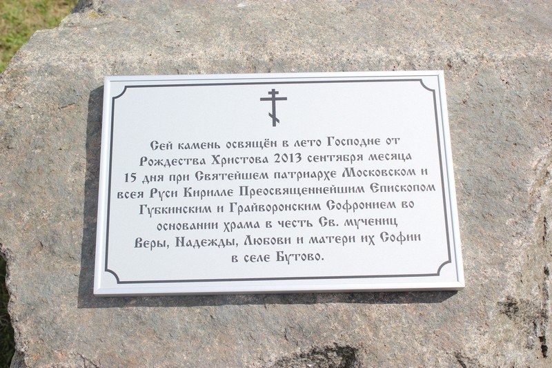 15 сентября 2013 года Преосвященный Софроний, епископ Губкинский и Грайворонский совершил освящение закладного камня в основание храма святых мучениц Веры, Надежды, Любови и матери их Софии в селе Бутово Яковлевского района.