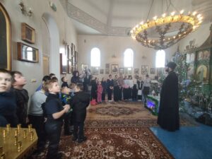 Не заметили, как пролетело время. Встреча была очень интересной и насыщенной! В завершении батюшка поблагодарил детей за праздничную атмосферу и каждому ребёнку вручил угощение.