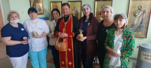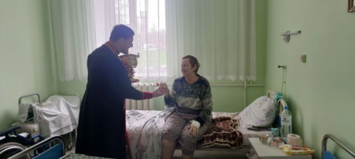 Во вторник Светлой седмицы, клирик храма Казанской иконы Божией Матери иерей Василий Волосянский посетил паллиативное отделение Томаровской больницы. Священник совершил молебен о здравии недужных, поздравил пациентов и медперсонал с Пасхой и угостил всех освященными куличами.