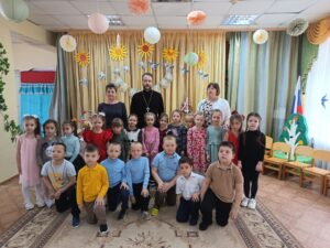 Традиционно в дни Светлой Седмицы настоятель храма Покрова Пресвятой Богородицы с. Кустовое посетил детский сад. Дети подготовили праздничную программу, где рассказали о Пасхе, играх и обычаях, связанных с ней. В завершении протоиерей Дмитрий Шурупов поздравил детей и освятил куличи для пасхального угощения.